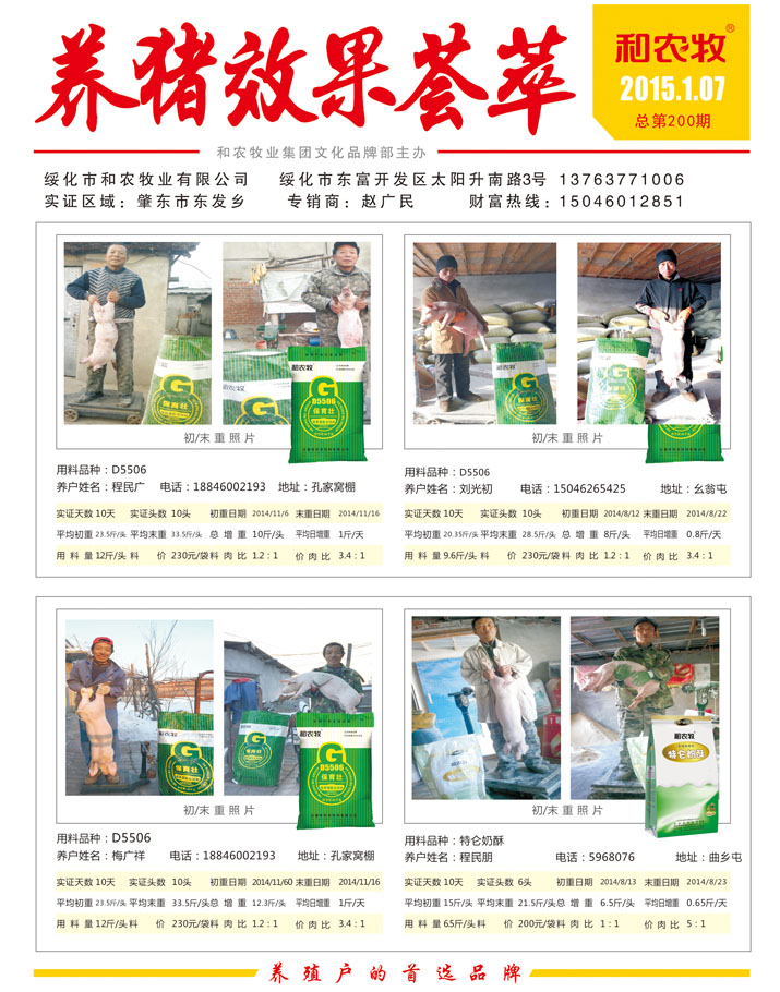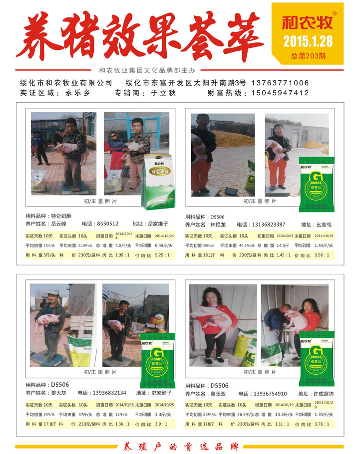 綏化市和農(nóng)牧業(yè)有限公司 綏化市東富開(kāi)發(fā)區(qū)太陽(yáng)升南路3號(hào) 13763771006 實(shí)證區(qū)域:肇東市東發(fā)鄉(xiāng) 專(zhuān)銷(xiāo)商:趙廣民 財(cái)富熱線(xiàn):15046012851 用料品種:D55...