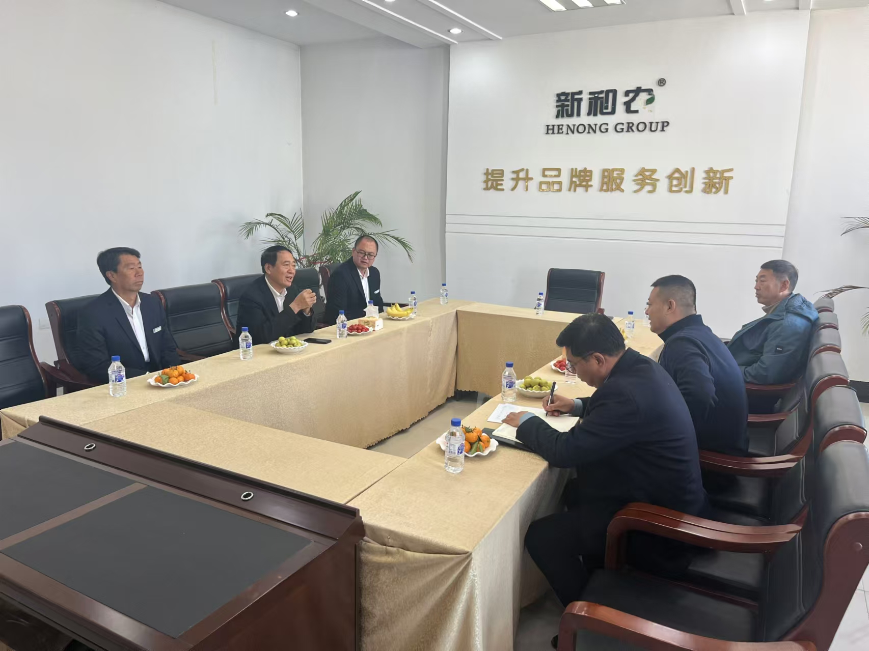 農(nóng)安農(nóng)商銀行行長王福堂,副行長劉仁,合隆行分行行長彭彬等一行5人到訪和農(nóng)牧業(yè)集團蒞臨,和農(nóng)牧業(yè)集團董事長方彥明先生熱情接待,雙方就加強業(yè)務(wù)合作進行座談交流。